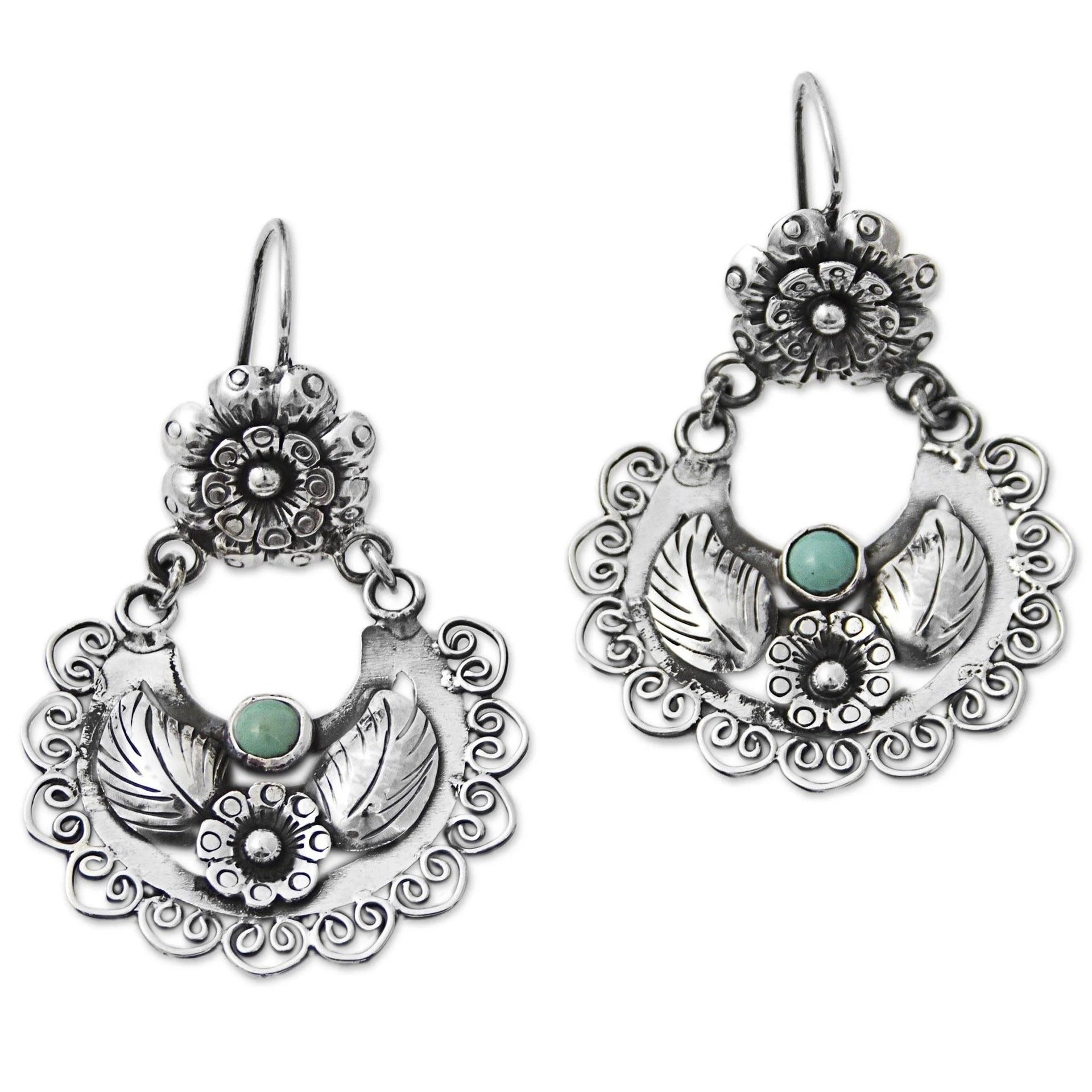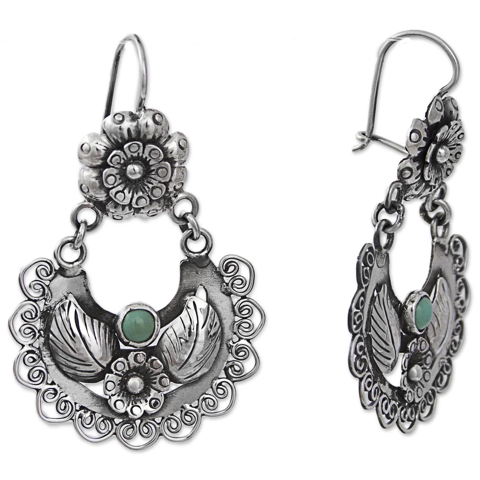 Vintage Silver Flower Dangling Earrings